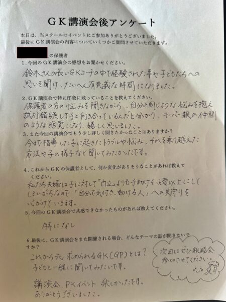 そんなGK講演会でしたが、終わった後に皆さんに